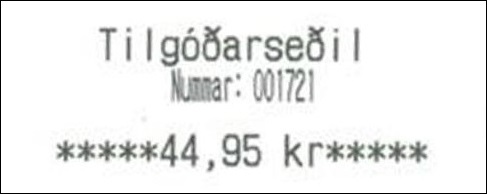 Tilgóðarseðilin hevði eina talrøð á 6 tøl, sum varð prentað á seðilin, har henda talrøð síðan varð tøppað inn í skipanina, fyri at eyðmerkja seðilin. Tilgóðarseðilin kann síggjast her niðanfyri: